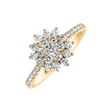 A majestic 14ct yellow gold diamond ring is a symbol of courage and innovation. Its colorful glitter and bold design are a testament to creativity and luxury. The jewelry is part of the Starlet collection.