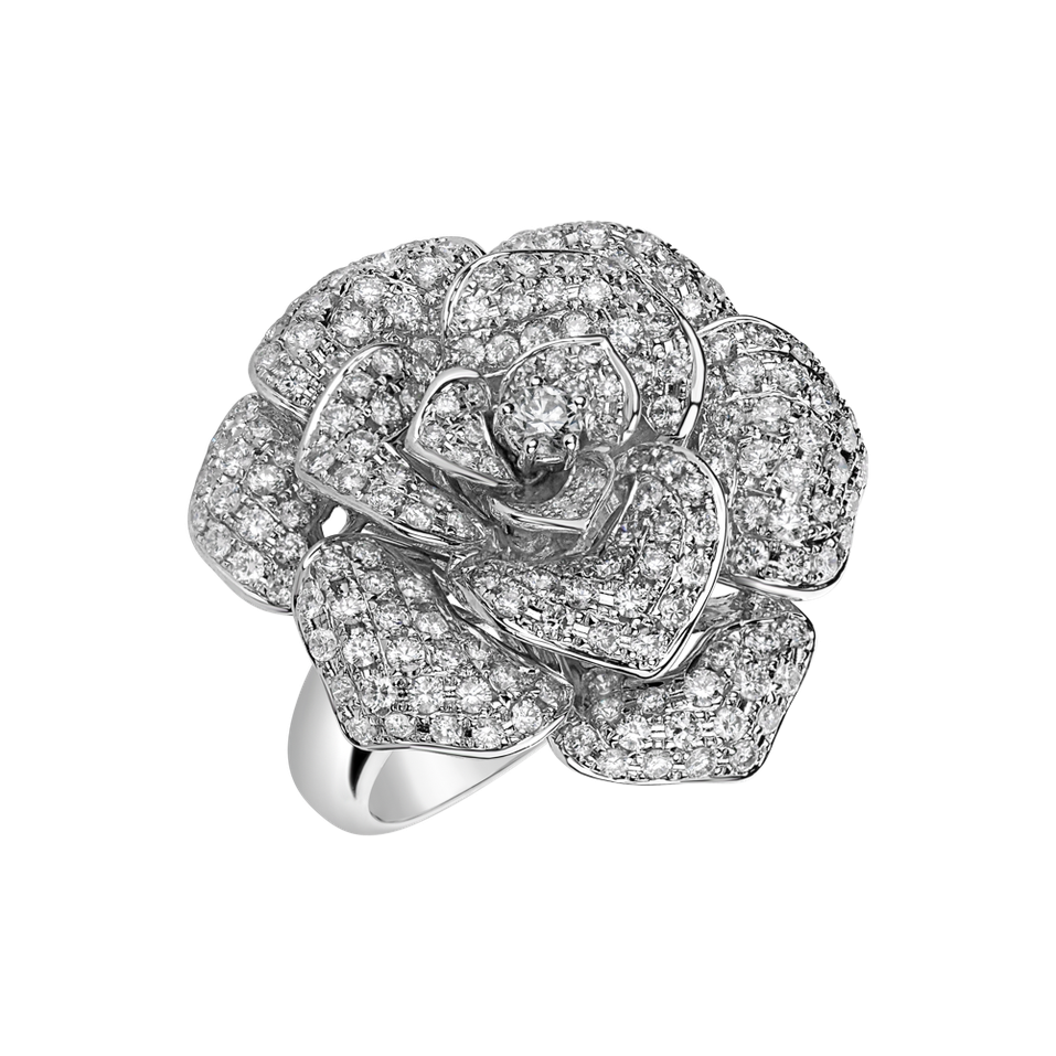 The 18ct white gold ring, decorated with beautiful diamonds, is a symbol of purity and sophisticated elegance. Its exceptional design and shine will captivate you. The jewelry is part of the Flowers collection.
