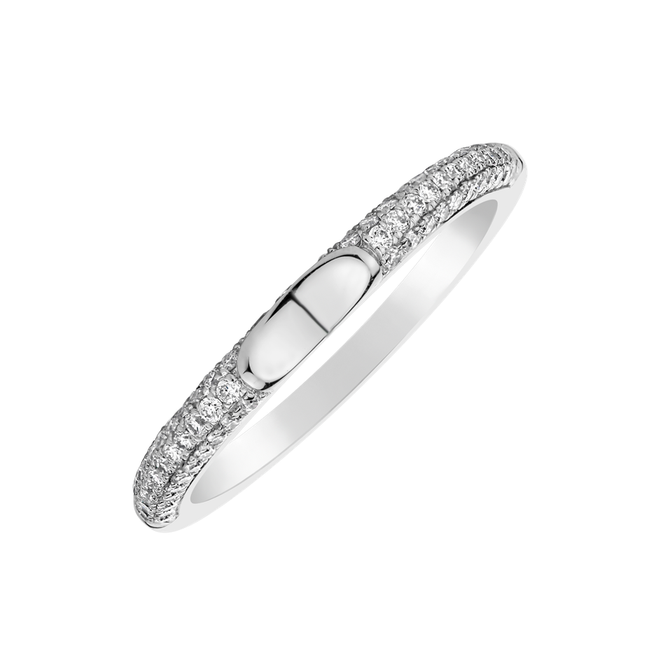 A heavenly ring in 14ct white gold with delicate diamonds, representing a subtle touch of luxury. The perfect accessory for everyday wear that brings sparkle to every moment. The jewelry is part of the Creoles collection.