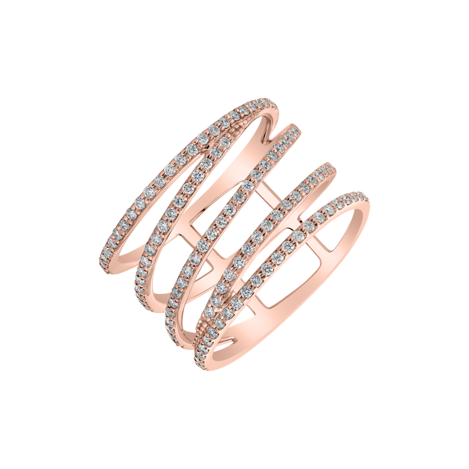 Suitable for both engagement and wedding, this 14ct rose gold diamond ring is like an eternal promise of love. Its diamonds, shining brightly like stars of hope, are a guarantee of endless happiness. The words "I love you" will be even more beautiful. The jewelry is part of the Aphrodité collection.