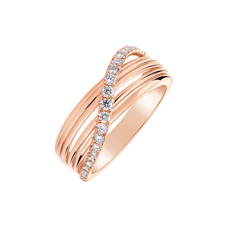 This 14ct rose gold ring is synonymous with luxury. Its diamonds and elegant look are perfect for everyday wear as well as special occasions. The jewelry is part of the Essential collection.