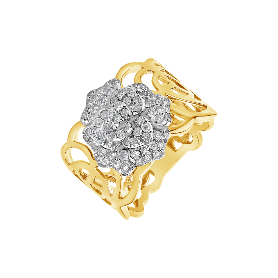 The sun and stars are reflected in each of the diamonds in this 18ct yellow and white gold ring. It's an invitation to live a life full of glitter. The jewelry is part of the Flowers collection.