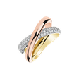 This 18ct rose, yellow and white gold diamond ring is a statement of luxury and elegance. Its design with rose, yellow and white gold and diamonds creates a harmonious whole that will captivate. The jewelry is part of the Essential collection.
