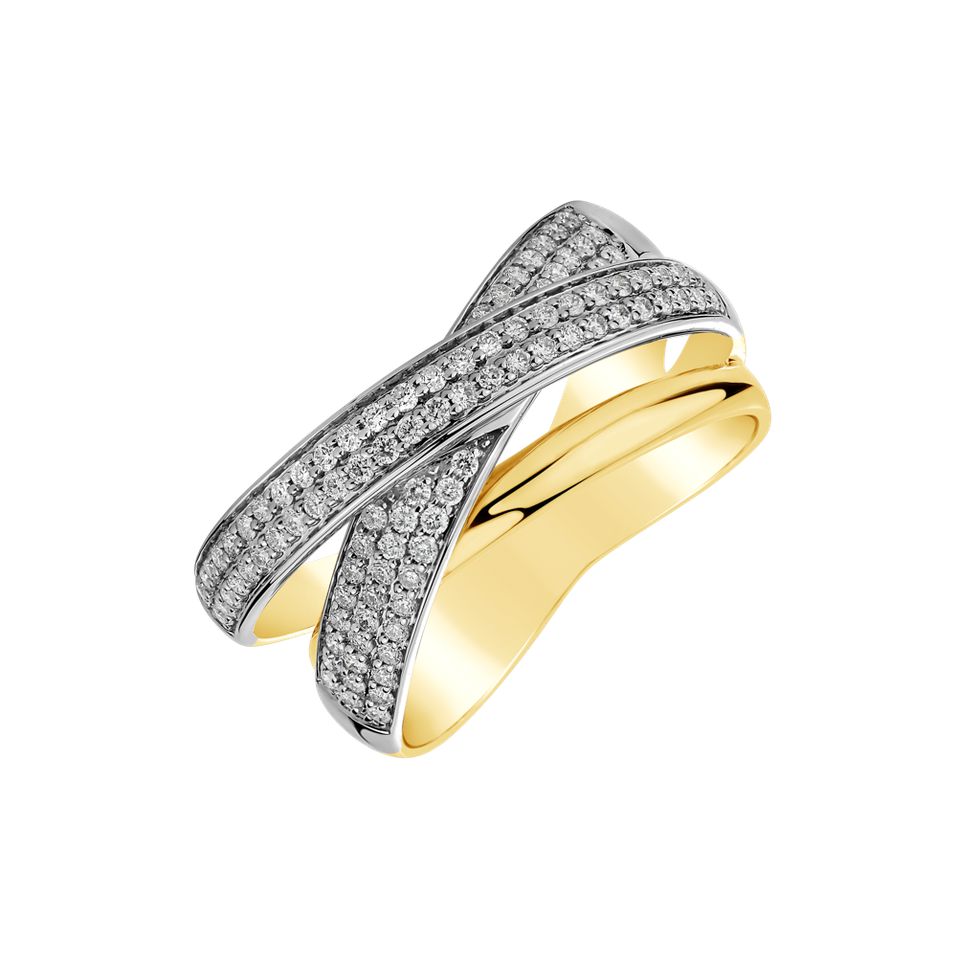 A 14ct yellow and white gold ring with diamonds, a symbol of exclusivity and elegance. Its radiance is like the sun that illuminates the path to success and fulfilled dreams. The jewelry is part of the Essential collection.