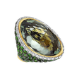 An 18ct yellow, white and black gold diamond, green amethyst and green garnet ring that is a masterpiece of craftsmanship. This piece of jewelry is a symbol that endless possibilities are within the reach of those who dare to dream big. The jewelry is part of the Fantasy collection.