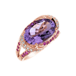 The subtle beauty of this 18ct rose gold diamond, Brazilian amethyst and ruby ring is a celebration of life's achievements. Its unsurpassed shine and perfect appearance remind you of an unquenchable desire to achieve your dreams. The jewelry is part of the Fantasy collection.