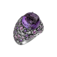 Exclusive ring in 18ct black gold with diamond, Brazilian amethyst and multicolor sapphire, is a perfect symbol of elegance and luxury. Its precise processing and beautiful shine will enchant you at first sight. The jewelry is part of the Fantasy collection.