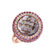 Every ray of light seems brighter when reflected in this gorgeous 18ct rose gold diamond, pink amethyst and pink sapphire ring. One jewel - a thousand moments of endless glitter. The jewelry is part of the Fantasy collection.