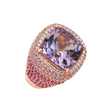 This 18ct rose gold diamond, brazil amethyst and pink sapphire ring is like an eternal promise of happiness. Its delicate design and the sparkle of diamonds are like sparkles in the sky that shine just for you. Your lucky star to stay forever. The jewelry is part of the Fantasy collection.
