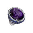This 18ct white gold diamond, sapphire and African amethyst ring combines fragility with permanence, a greeting from beauty itself. Its wonderful combination will be with you for a lifetime. The jewelry is part of the Fantasy collection.