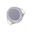 18ct white gold ring with diamonds and chalcedony symbolizing communication and self-expression. Its seductive shimmer is a celebration of expression and elegance, ideal for those who value originality. The jewelry is part of the Blossoms collection.
