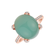 Delicacy and elegance combine in this 14ct rose gold ring with diamonds and turquoise chalcedony. Its subtle design is the perfect accessory for any important occasion, adding flair while emphasizing the wearer's delicate beauty. The jewelry is part of the Blossoms collection.