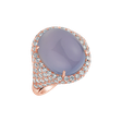 This gorgeous 14ct rose gold diamond and blue chalcedony ring is a piece of jewelry full of elegance and beauty. The blue chalcedony symbolizes calm and peace, and the diamonds give the ring a beautiful shine and light. This is a piece of jewelry for those who are looking for peace and beauty in one piece of jewelry. The jewelry is part of the Blossoms collection.