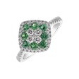 A gold ring in 18ct white gold with diamonds and an emerald is a symbol of your unique style and taste. The emerald symbolizes beauty and life, while the diamonds add an incredible sparkle to the ring. It is a ring that reminds you of your uniqueness and the achievements you have achieved. The jewelry is part of the Charming collection.