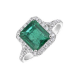 Surrounded by the sparkle of the purest diamonds and emeralds, this 14ct white gold ring is a bold statement of elegance and natural beauty that will last forever. The jewelry is part of the Diana collection.