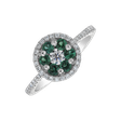 Immerse yourself in the pure brilliance of this 18ct white gold diamond and emerald ring, perfect proof that true elegance lies in seemingly simple details. The jewelry is part of the Mirage collection.