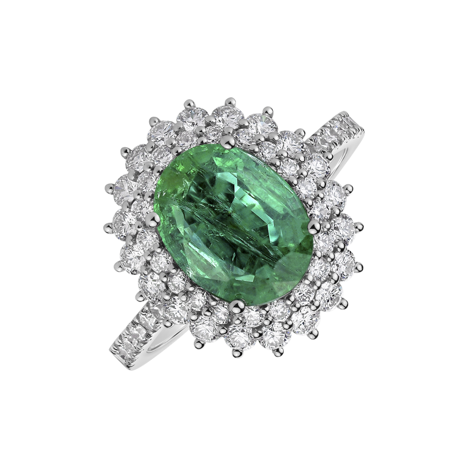 A symbol of your personality - a 14ct white gold ring with diamonds and an emerald embodying success and exceptionality. Its glow brings a sense of triumph and timeless beauty. The jewelry is part of the Diana collection.