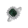 Courage is embodied in this 14ct white gold diamond and heart-warming emerald ring, designed for strong personalities who celebrate their success with the same seriousness with which they wear their jewelry. The jewelry is part of the Diana collection.
