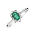 This 14ct white gold diamond and emerald ring is like an eternal promise of happiness. Its delicate design and the sparkle of diamonds are like sparkles in the sky that shine just for you. Your lucky star to stay forever. The jewelry is part of the Diana collection.