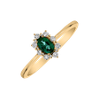 The 14ct yellow gold diamond and emerald ring is an expression of both romance and power. This ring combines the beauty of diamonds with the subtle luster of emeralds, creating blank paper for an endless story of love and passion. The jewelry is part of the Diana collection.