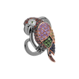 Made of 18ct black gold, this exceptional ring impresses with its unusual design and combination of gemstones. Its multicolor diamond and sapphire create a stunning contrast, while garnet green adds a unique touch to the piece. This ring is a great embodiment of elegance and originality. The jewelry is part of the Animals collection.