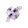 Klasický design zásnubního prstenu v moderním provedení. Oválný centrální kunzit je po stranách zdoben dvěma menšími diamanty, což vypadá opravdu úchvatně.
