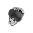 Your every move will now be accompanied by the mesmerizing sparkle of diamonds, gray moonstone and green garnet carefully set in a gorgeous 18ct black gold ring. This gem is a symbol of elegance and uniqueness. The jewelry is part of the Animals collection.