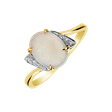 Modern elegance and lasting value combine in this 14ct yellow gold diamond and white opal ring. The jewelry is part of the Blossoms collection.