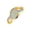 A finely tuned 14ct yellow and white gold ring adorned with brilliant diamonds and a deep white opal is a solemn expression of the depth of your feelings and an opulent sign of your taste. The jewelry is part of the Blossoms collection.