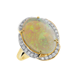 This 14ct yellow gold diamond and white opal ring is an expression of your unique elegance and taste. Its elegant design and precise workmanship will give you a classy and sophisticated look. The jewelry is part of the Blossoms collection.