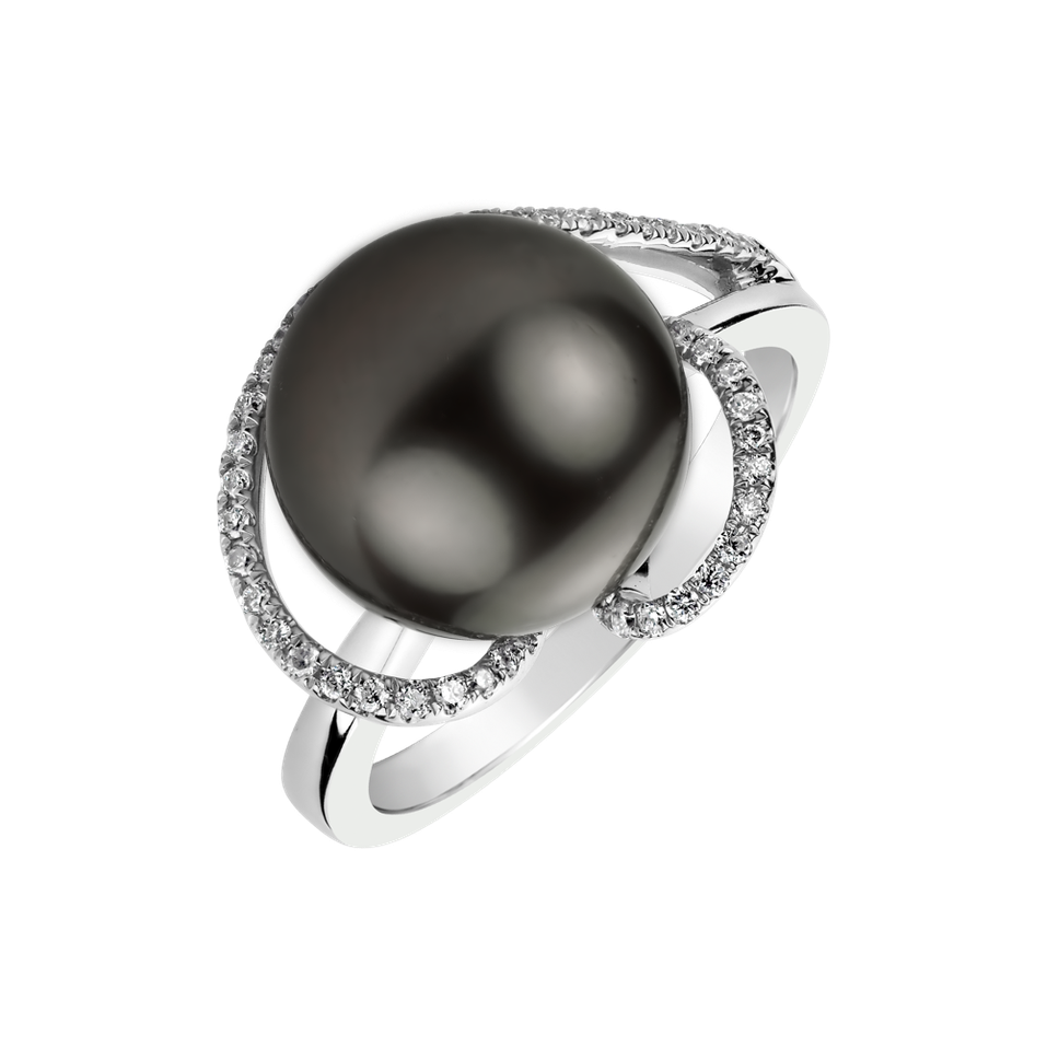 The 18ct white gold diamond and sea black pearl ring, boasting its perfection and carefully selected stones, is a symbolic seal of eternal elegance. The jewelry is part of the Ocean & River collection.