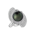 An elegant ring made of 18 ct white gold with diamonds and a sea black pearl, which impresses with its delicate beauty and nobility. This ring is the perfect combination of elegance and natural shine. The jewelry is part of the Ocean & River collection.