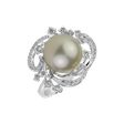A finely tuned 18ct white gold ring adorned with brilliant diamonds and a freshwater white pearl is a solemn expression of the depth of your feelings and an opulent sign of your taste. The jewelry is part of the Ocean & River collection.