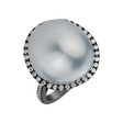 A ring in 18ct black gold with diamonds and a freshwater pearl, boasting its perfection and carefully selected stones, it is a symbolic seal of eternal elegance. The jewelry is part of the Ocean & River collection.