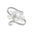 A delicate 18ct white gold ring with diamonds and a freshwater white pearl is an expression of never-ending deep beauty. Its radiance is like the surface of water, reflecting the sun of success and fulfilled dreams. The jewelry is part of the Ocean & River collection.