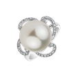 A delicate 18ct white gold ring with diamonds and a freshwater white pearl is an expression of never-ending deep beauty. Its radiance is like the surface of water, reflecting the sun of success and fulfilled dreams. The jewelry is part of the Ocean & River collection.