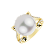 Pearls in your jewelry box - purity, timelessness and beauty. A beautiful 18ct yellow gold ring with diamonds and sea white pearl will impress with its unique design and add a touch of romance to your look. The jewelry is part of the Ocean & River collection.