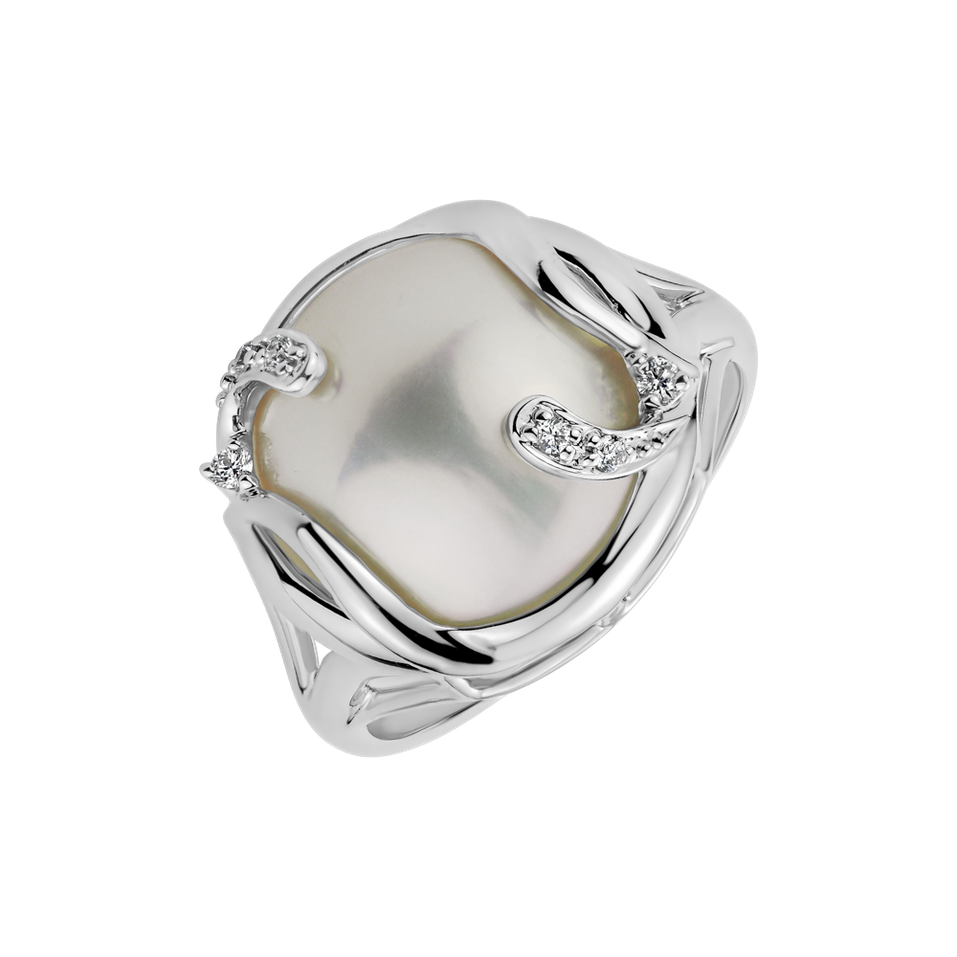 Celebrate every day with a 14ct white gold ring adorned with diamonds and sea white pearls. Its unique design and quality workmanship make it the perfect accessory for any occasion. The jewelry is part of the Ocean & River collection.