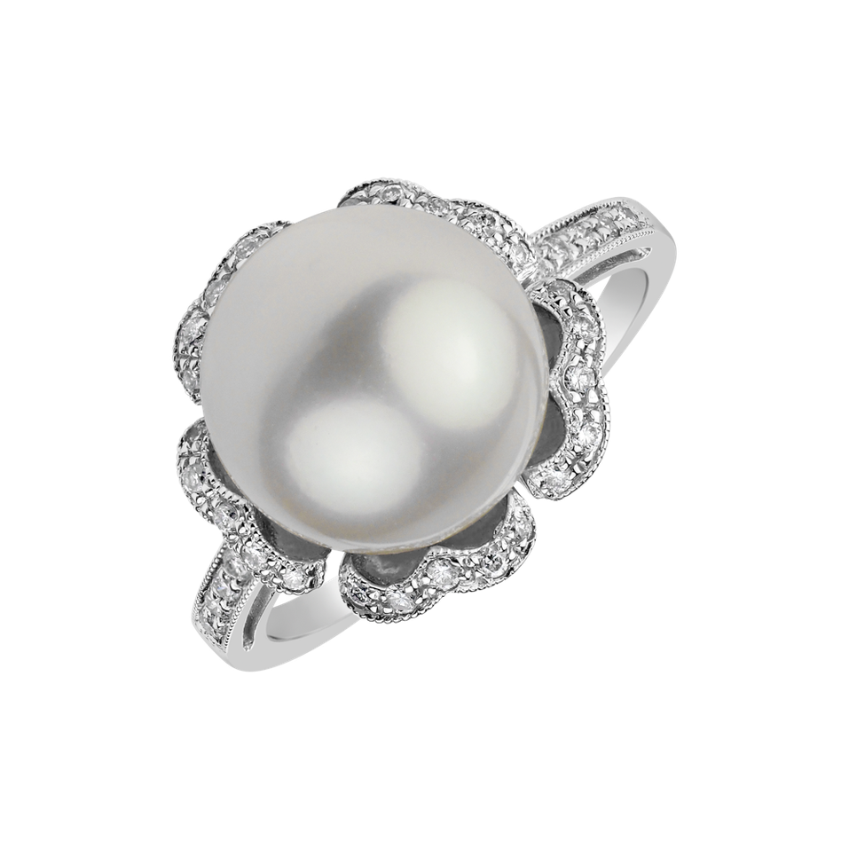 Discover the combination of the warm shimmer of 18ct white gold and dazzling diamonds, which together with the freshwater white pearl create a symphony of light and elegance in this luxurious ring. Pamper your sense of beauty with this subtle tribute to success and sophistication. The jewelry is part of the Ocean & River collection.