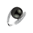 An elegant ring made of 18 ct white gold with diamonds and a sea black pearl, which impresses with its delicate beauty and nobility. This ring is the perfect combination of elegance and natural shine. The jewelry is part of the Ocean & River collection.