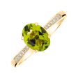 Zlatý prsten z kolekce ALOve Bonbons s oválným centrálním perioditem má jemnou obroučku s drobnými brilianty po stranách. Výrazný šperk, který dokonale vynikne. Objevte kouzlo barevných drahých kamenů a rozzařte každý váš den.