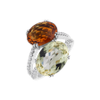 This 14ct white gold diamond, Madeira citrine and lemon quartz ring is like a mysterious evening story full of mystery and magic. Its unique design is a symbol of inner strength and endless elegance. The jewelry is part of the Fantasy collection.