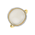 A ring in 18ct yellow gold with diamonds and white quartz is like a bright moon in a dark sky. Its diamonds and white quartz create a piece of jewelry that impresses with its unique beauty. The jewelry is part of the Blossoms collection.