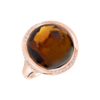 The 18ct rose gold diamond and cognac quartz ring is like the treasure of a lost kingdom. Its glittering diamonds and rare cogniak quartz symbolize luxury, power and alluring beauty. The jewelry is part of the Blossoms collection.