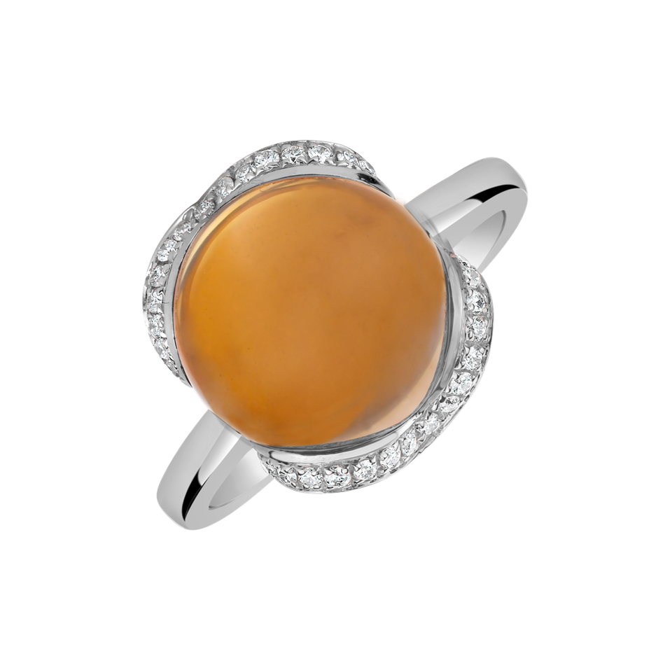 This 14ct white gold ring with diamonds and cognac quartz is an expression of your unique style and taste. Cogniak quartz brings warm luxury and beauty to your life, while diamonds give the ring an unmistakable shine. The jewelry is part of the Blossoms collection.