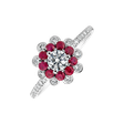 An 18ct white gold diamond and ruby ring that is like a symphony of light and elegance. Its exquisite design presents a path to success, full of beauty and soft tones. The jewelry is part of the Mirage collection.