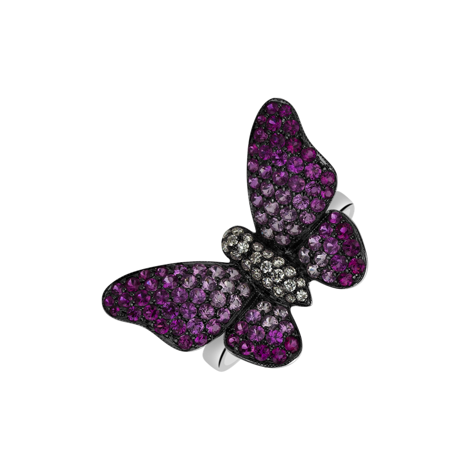 Diamond ring with Ruby and Sapphire Splendid Butterfly