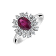 Subtlety and elegance come together in this 18ct white gold diamond and ruby ring that celebrates your every gesture. The jewelry is part of the Diana collection.