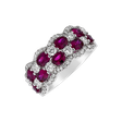 An exclusive ring in 18ct white gold, decorated with diamonds and rubies, is a masterpiece of jewelry art. Its unique design and the extraordinary beauty of the ruby reveal true elegance. The jewelry is part of the Charming collection.