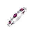 Elegant 18ct white gold ring set with dazzling diamonds and a beautiful ruby. This ring is a symbol of luxury and elegance that will bring you countless moments of admiration from others. With its unique design and quality, you will become the center of attention at any social event. The jewelry is part of the Creoles collection.